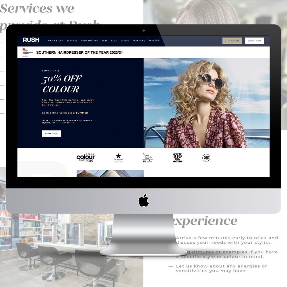 We’ve supported RUSH Hair & Beauty for over six years, maintaining and enhancing their bespoke WordPress website with custom features and plugins. Our team also manages domains, integrations, and provides ongoing technical support across their digital platforms.